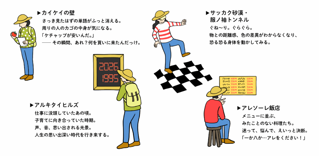 『認知症世界の歩き方』は、認知症を「知識」として理解するのではなく、認知症のある方が生きている世界を「体験」として共有することで、人々の認知症に対する見方そのものを変えていく取り組みです。今回の展示では、書籍だけでは伝えきれなかった戸惑いや感覚の揺らぎを、身体全体で体験してもらうことを目指しています。